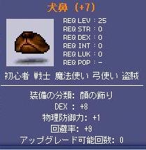へだ君:僕は3日に一回くらい見ているさね へだ君は毎日見てよ・・・ さて、今日は昨日に続いて終日ドロップ2倍ということで、おはぜに行ったり、武器庫に行ったり、羊に行ったりしてきました^^ へだ君:それって、いつもと一緒さね ・・・・・・いや、まあ。そうだけどさ・・・。 まあ、それじゃあいつもの恒例の強化話でも・・・ へだ君:いつから恒例になったさね? 一週間くらい前から(ボソ まあ、とりあえず、INTタオルですが・・・・・・! 最後宿らずにINT22でとまりました! そして本番な強化・・・・・・ へだ君;本番って何さね? いや~200mも臨時収入があったしさ、強化するしかないかな~? とね へだ君:そういうことしてるから、メルがなくなるさね。 ・・・・・・ それは言わないで^^; で、まあ。露天でね99トマホークと100トマホークが安くてついつい買っちゃったんですよ。 へだ君:消えたさね? んや・・・・・・ 114UG4と、115UG2になった(ぁ ヘダ君:あるえ~? 結構良いんじゃないさね? だよね~これも速度書が出たときに備えてトレード保管行きです^^ で、まあ。満足しないでねその後さ。ふと思い出したことがあったんだよ。 150祝いにね、明日さんから歯翼強化途中品貰ったんだけどね。 もう一人貰ってたのさ。 某、白精戦士から、回避の書(顔)70%をね! と言うわけで、貰ったからには強化しないととね、フリマで回避書集めて強化・・・(みんな装備とか書渡しすぎだよ! 私に消せと言っているのか! というわけで、強化した結果が・・・・・・ 変なの作っちゃいましたw ヘダ君:期待に添えて消しなさいさね。 いや~できちゃったからさ~ まあ、こんな感じの一日でしたよ ・・・・・・あ~あと、攻撃3、DEX6のマントを作って、INT5の盾買いました(ぁ 残金61m・・・・・・減るの早! これで・・・・・・INT装備で92達成ですかね? @8! アイゼンで4! @4何とかしないと@@